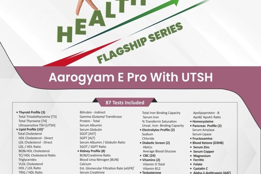 AAROGYAM E PRO WITH UTSH   Offer price :   ₹3500 BOOK NOW Aarogyam E Pro with UTSH is a complete package of 90 parameters. Its unique feature is that it covers cystatin C for kidney health and antitrypsin for lung health with accurate diagnosis. It also helps understand if a…