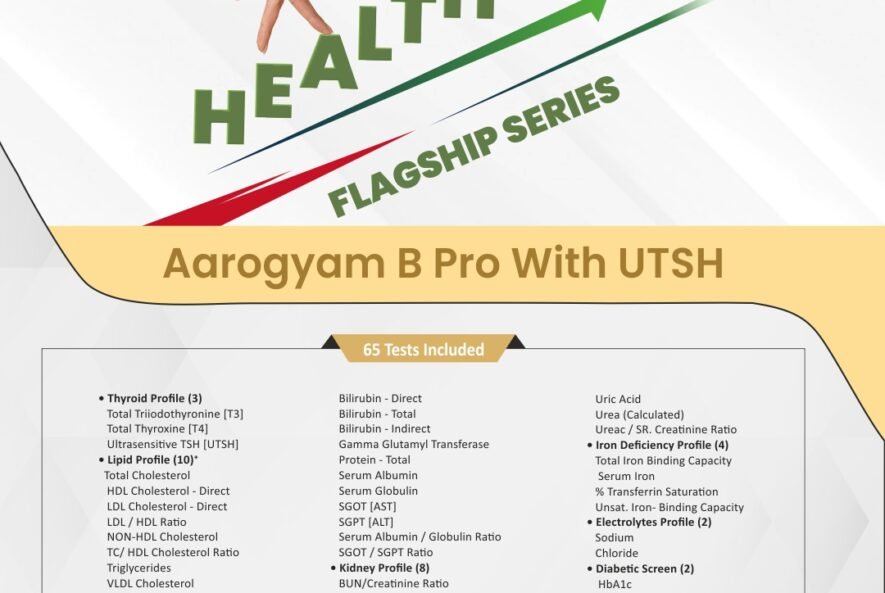 AAROGYAM B PRO WITH UTSH Offer price :   ₹1100 BOOK NOW Aarogyam B Pro with UTSH is our second-most popular health checkup package that includes 68 parameters. It includes CBC and diabetes testing, making it an ideal package for a full-body check-up. This comprehensive preventive care package evaluates thyroid, liver,…