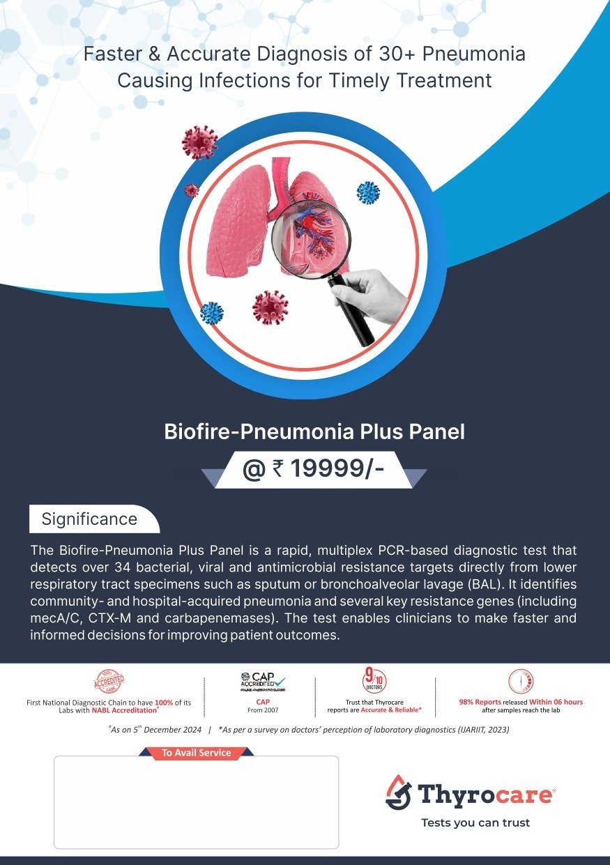 The BioFire Pneumonia Plus Panel is a rapid, multiplex PCR-based diagnostic test that detects over 34 bacterial, viral and antimicrobial resistance targets directly from lower respiratory tract specimens such as sputum or bronchoalveolar lavage (BAL). It identifies community- and hospital-acquired pneumonia and several key resistance genes (including mecA/C, CTX-M and carbapenemases). The test enables clinicians to make faster and informed decisions for improving patient outcomes.